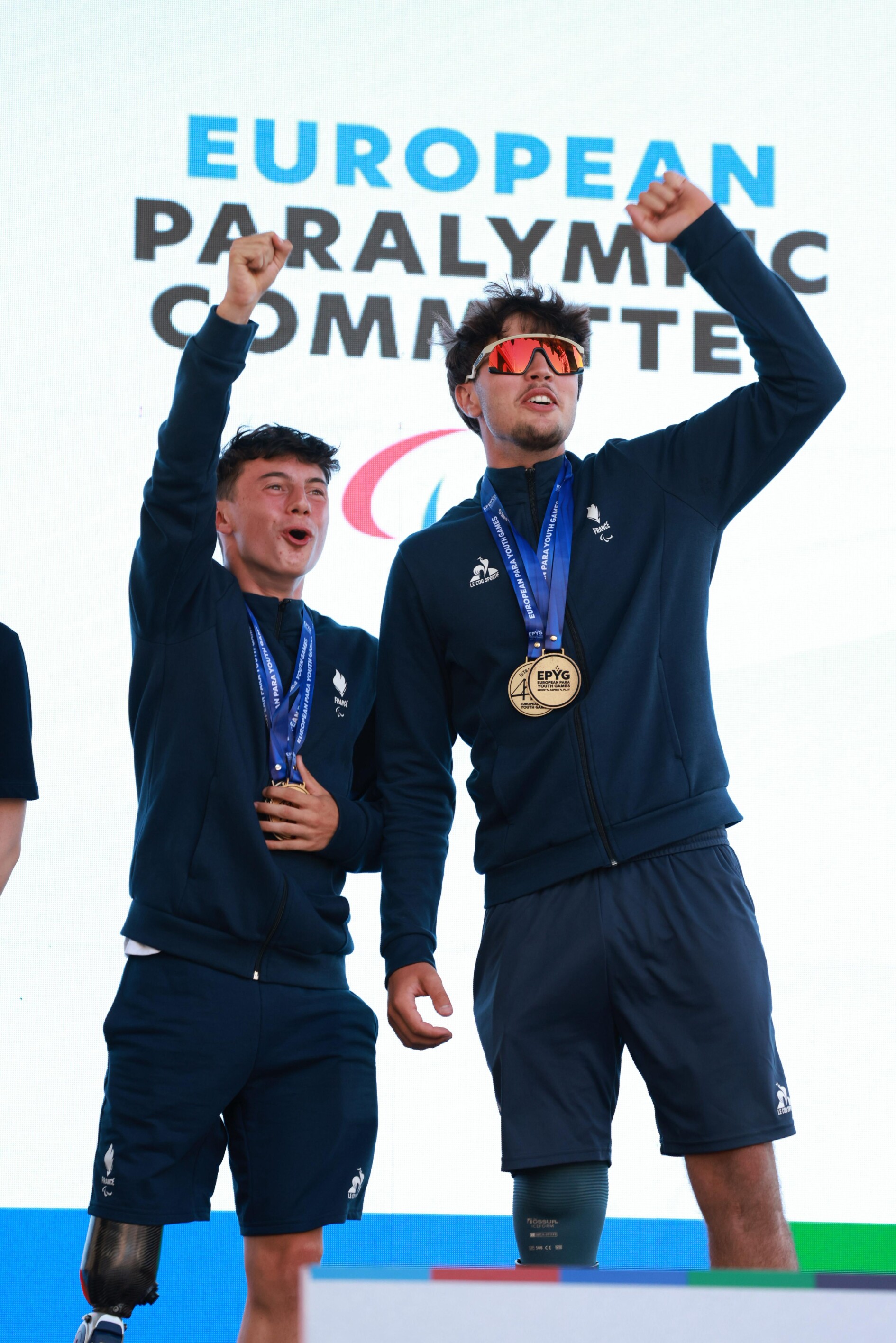 Déjà bien récompensés sur le simple, les pongistes ont brillé en double. Hugo Nou, déjà bronzé en simple, remporte l’or en double hommes avec le suédois Leo Ryding, et le bronze en double mixte avec Maëva Olivier “Je suis super content de rapporter trois médailles et d’avoir pu représenter les couleurs de la France, ça été un grand honneur pour moi, mais je suis quand même plutôt déçu de la couleur de certaines.” Maëva Olivier complète également ses deux médailles avec un titre en double femmes avec la grecque Evanthia Bournia. Elle se sent « fière de mes résultats et très heureuse de représenter l’équipe de France ». Notre duo de Clément, Clément Latorre et Clément Gambart, s’inclinent en finale face à l’équipe polonaise. Clément, qui avait déjà eu une médaille de bronze la veille, est “très fier de ma compétition tant que le plan sportif que mental. Ces deux médailles sont très encourageantes pour la suite.” Clément Gambart souligne l’importance de cette compétition pour la suite de sa carrière sportive “Bonne compétition dans l’ensemble, on repart avec la médaille d’argent et de gros enseignements pour la suite”. Enfin, la journée se termine avec une nouvelle médaille pour Alexis Badié, en bronze, remportée avec son binôme espagnol, Ariadna Ardevol. Pour ce jeune qui a commencé le para tennis de table deux ans auparavant, les EPYG sont une réussite « En venant aux EPYG, je visais le podium et j’avais envie de me confronter à des joueurs d’autres nationalités car c’est ma première compétition internationale. J’ai affiché un gros niveau de jeu sur toute la compétition. C’est le fruit d’un long travail de préparation mentale car toute l’année, je me suis préparé dans au pôle handisport au CREPS de Talence; ça a été beaucoup de sacrifices car je vis loin de ma famille, mais ça a payé sur cette compétition ! »