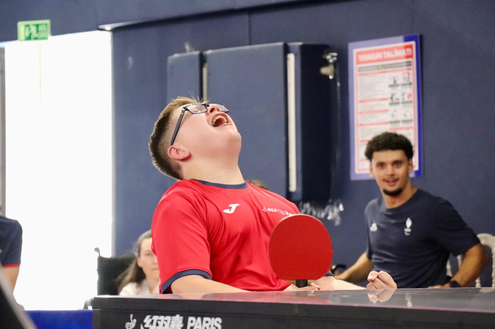 Le para tennis de table tricolore est en feu ! En classe 5, la finale a opposé nos deux français, Alexis Badie et Luc Mangold, dans un duel à suspense, soutenus par tout le collectif France. Alexis l’emporte de justesse, tandis que Luc s’offre l’argent « Très heureux de ma compétition et de mon niveau de jeu pour ma première participation aux EPYG » s’exprime Alexis. Hugo Nou complète le podium avec une médaille de bronze, battu en demi-finale par le triomphant Alexis. Notre pongiste féminine, Maëva Olivier s’incline en finale face à une adversaire Turque et prend l’argent. Clément Latorre, de son côté, ne parvient pas à atteindre la finale, et décroche le bronze. Mais la moisson ne s’arrête pas là : quatre demi-finales sont confirmées pour nos Bleus demain !