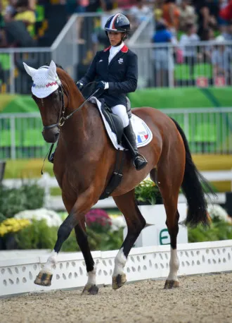 Installée sur sa jument Westphalienne, Louise Studer découvre les Jeux Paralympiques au Brésil ??