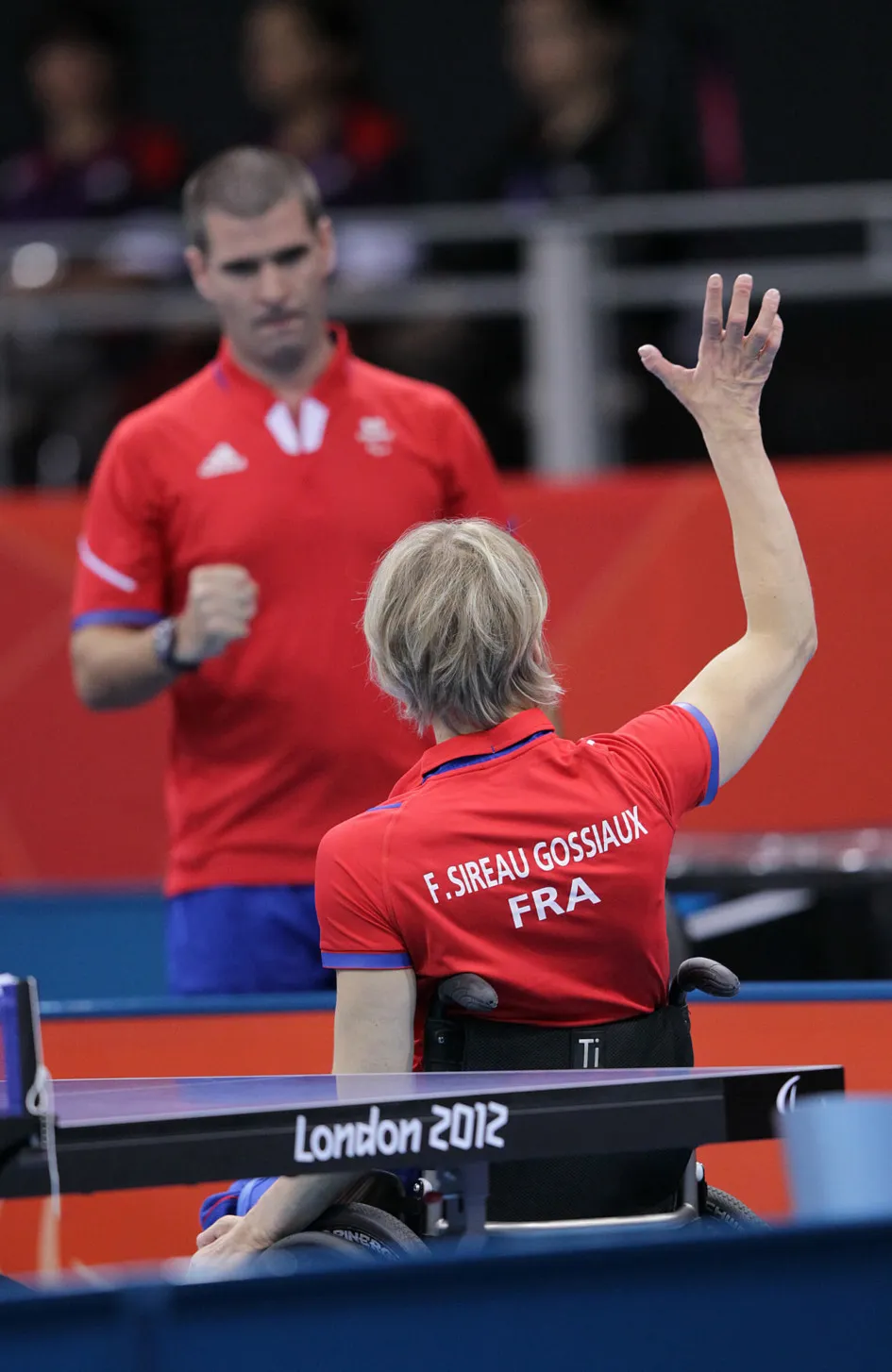Florence Gossiaux est paralysée à l’âge de 15 ans. Elle devient athlète paralympique de haut niveau, remportant quatre médailles aux Jeux paralympiques sur 100 mètres et 800 mètres en fauteuil. Le tennis de table a été une révélation au moment de sa reconversion après 16 ans d’athlétisme à haut niveau. C’est grâce à la rencontre avec une pongiste aux Jeux Paralympiques de Sydney que Florence s’est prise de passion pour cette discipline. Depuis, elle n’a pas lâché la raquette, ce qui lui réussit ! Elle a participé aux Jeux Paralympiques de Pékin 2008 et Londres 2012.