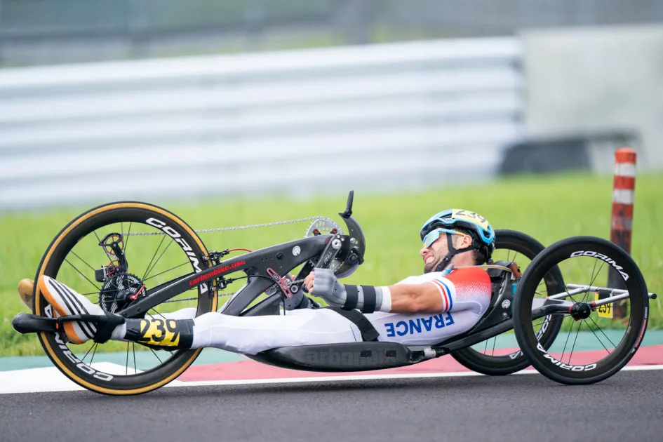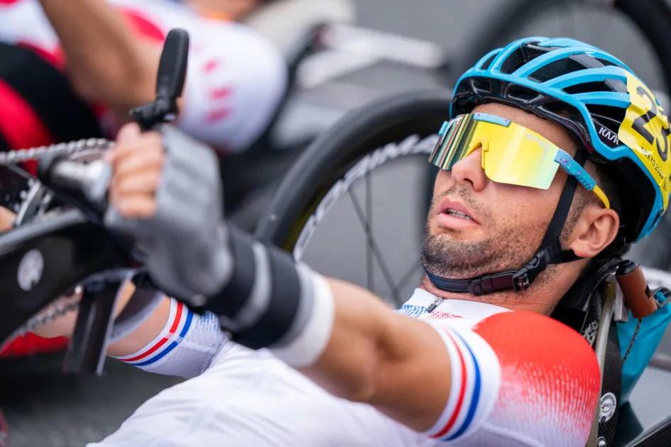 Un homme de défi ! Et pour cause, Florian Jouanny est devenu en septembre 2017, le premier européen à terminer un Ironman : 3,8Km de natation, 180,2Km en handbike et 42,195Km de course en fauteuil, rien que ça… Mais c’est bien en para cyclisme que le natif d’Echirolles rêve de Jeux Paralympiques. À la suite d’un accident de ski en avril 2011, Florian perd l’usage de ses jambes. S’en suit une longue période de convalescence où le handbike va se révéler être un outil primordial pour sa reconstruction. 5 ans après son accident, l’isérois débute la compétition handbike avec des résultats encourageants : second de l’European Handbike Circuit à Bardonecchia ou encore des championnats de France de course en ligne et de contre-la-montre. En plus de ses médailles d’argent et de bronze, Florian est devenu champion paralympique lors de la course en ligne H1-2 à Tokyo en 2021. Depuis, il ne s’arrête pas et succède de nombreux titres dans les compétitions internationales. Lors des derniers Jeux Paralympiques de Paris 2024, Florian ajoute à sa collection deux titres de champion paralympique et une médaille de bronze.