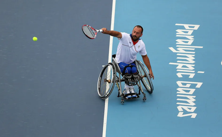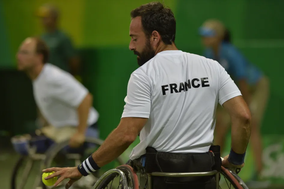 Sa vie à lui est un sport de combat ! Il pratique le tennis depuis l’âge de 6 ans et a été classé 5/6. Après un accident de ski à l’âge de 18 ans, il décide de reprendre la pratique du tennis en fauteuil. Il aura par la suite une carrière fulgurant : quatre fois médaillé aux Jeux Paralympiques (trois en double et une en simple), vainqueur de sept tournois du Grand Chelem en double messieurs comme Roland Garros avec Stéphane HOUDET ou Wimbledon avec Tom EGBERINK (NED). Pour ses 4èmes et derniers Jeux Paralympiques à Rio en 2016, il est devient le charismatique porte-drapeau de la délégation française.
