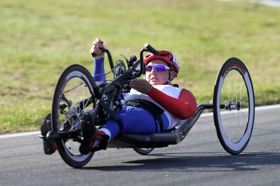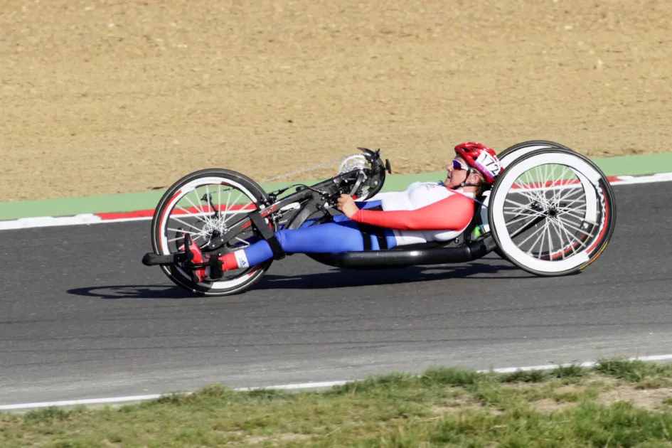 Murielle Lambert, atteinte d’une poliomyélite à l’âge de 18 mois, commence le handbike en 2001 sur prescription médicale. Les courses sont ensuite venues progressivement. En 2003, sa carrière sportive prend son essor. Murielle décroche le titre championne de France, participe à l’European Handbike Circuit. Au bout de cinq courses en France, Belgique, Suisse, Autriche, Allemagne, elle termine 6e féminine sur 17 au classement général. En septembre 2003, elle décroche une médaille de bronze aux championnats d’Europe. En 2004, elle est encore première aux championnats de France. L’année suivante, elle est à nouveau championne de France. En 2012, Murielle décroche sa qualification pour les Jeux Paralympiques de Londres.
